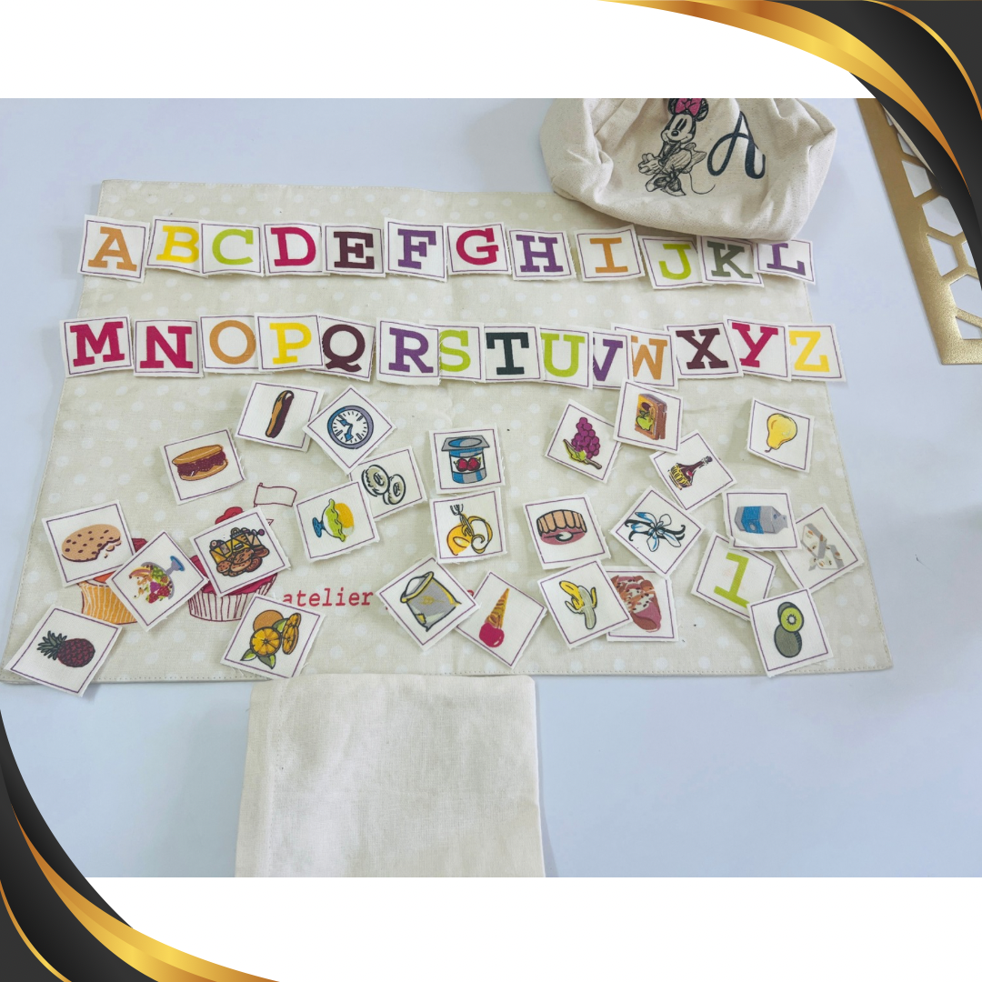 Contains 26 velcro alphabets and images. This mat can be used as playmat and placemat