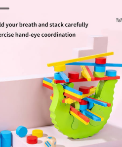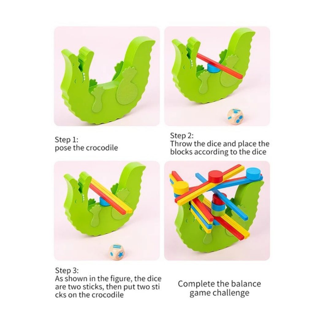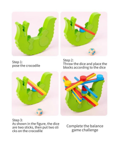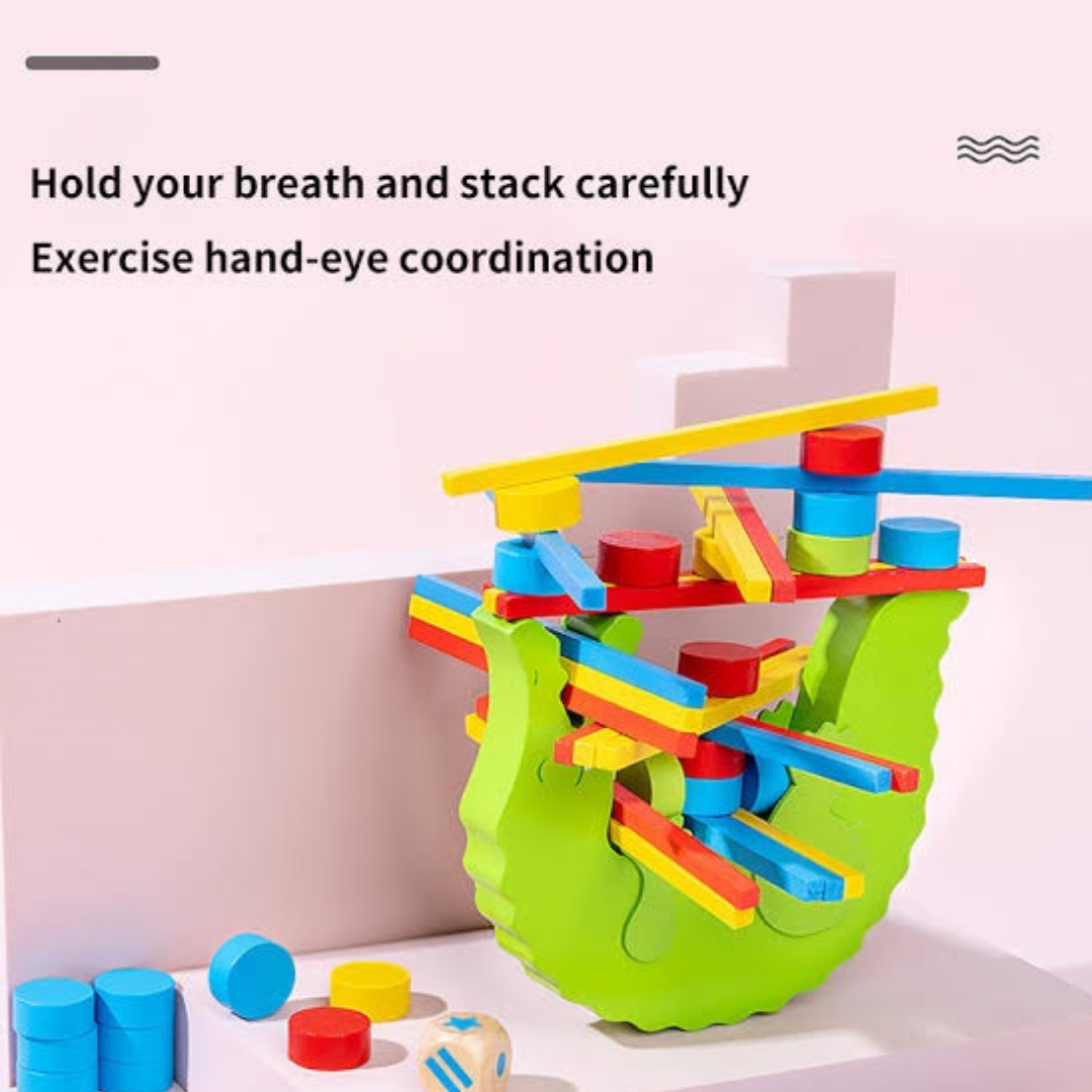 Wooden Balance Beam Toy Crocodile Color Cognitive Stacked Height Balance Game Building Blocks Early Education Fun Parent-Child Interaction Toys for Kids