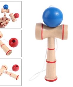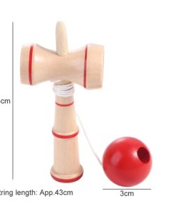 This toy is a traditional game called Kendama. Although it may sound simple, there are a nearly unlimited number of specific techniques for doing so. The game is basically played by tossing the ball and attempting to catch it with the stick. Very helpful to improve your hand eye coordination as well as your timing, balance and concentration.