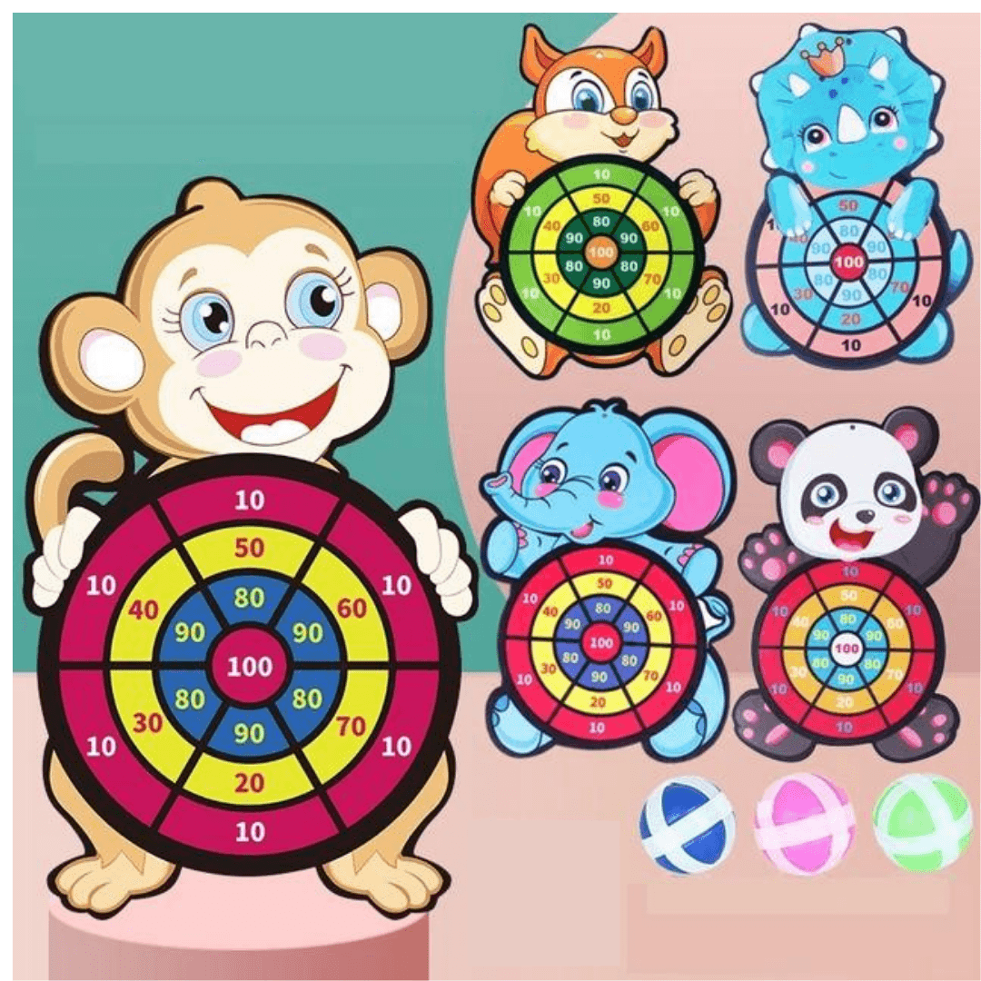- This kits includs 1pcs random animal shape dartboard, 3pcs stick ball 1pcs lightweight and portable