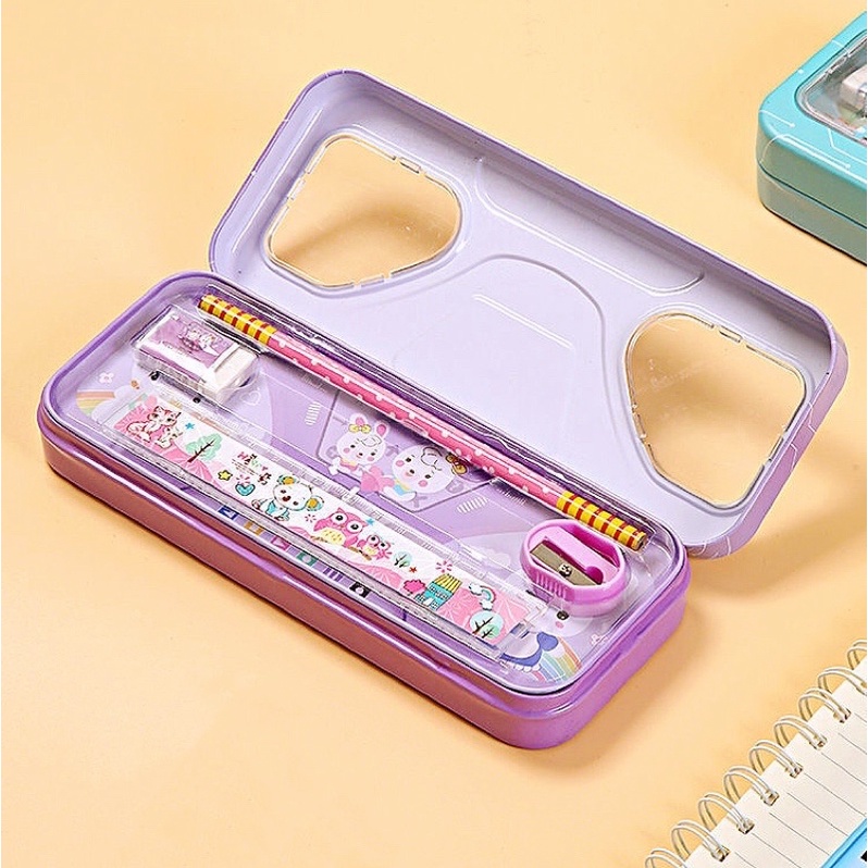 - Keep all your stationery in this metal pencil box having 2 compartments. Suitable For School And Home as well.