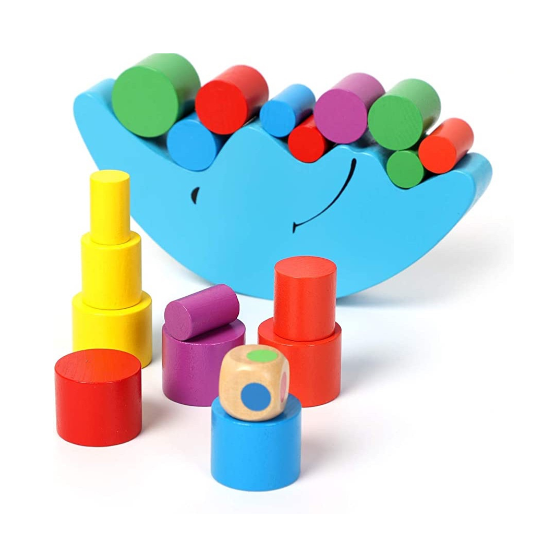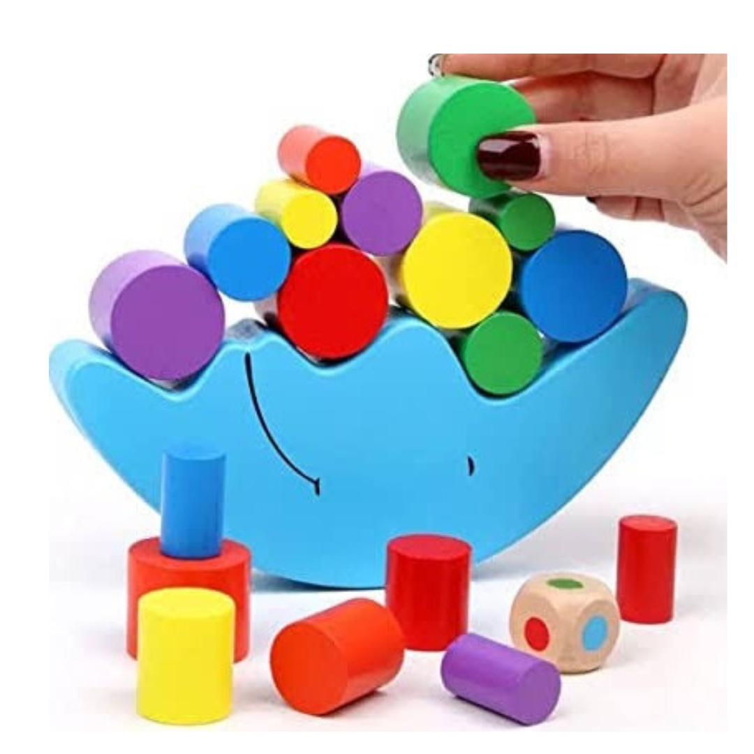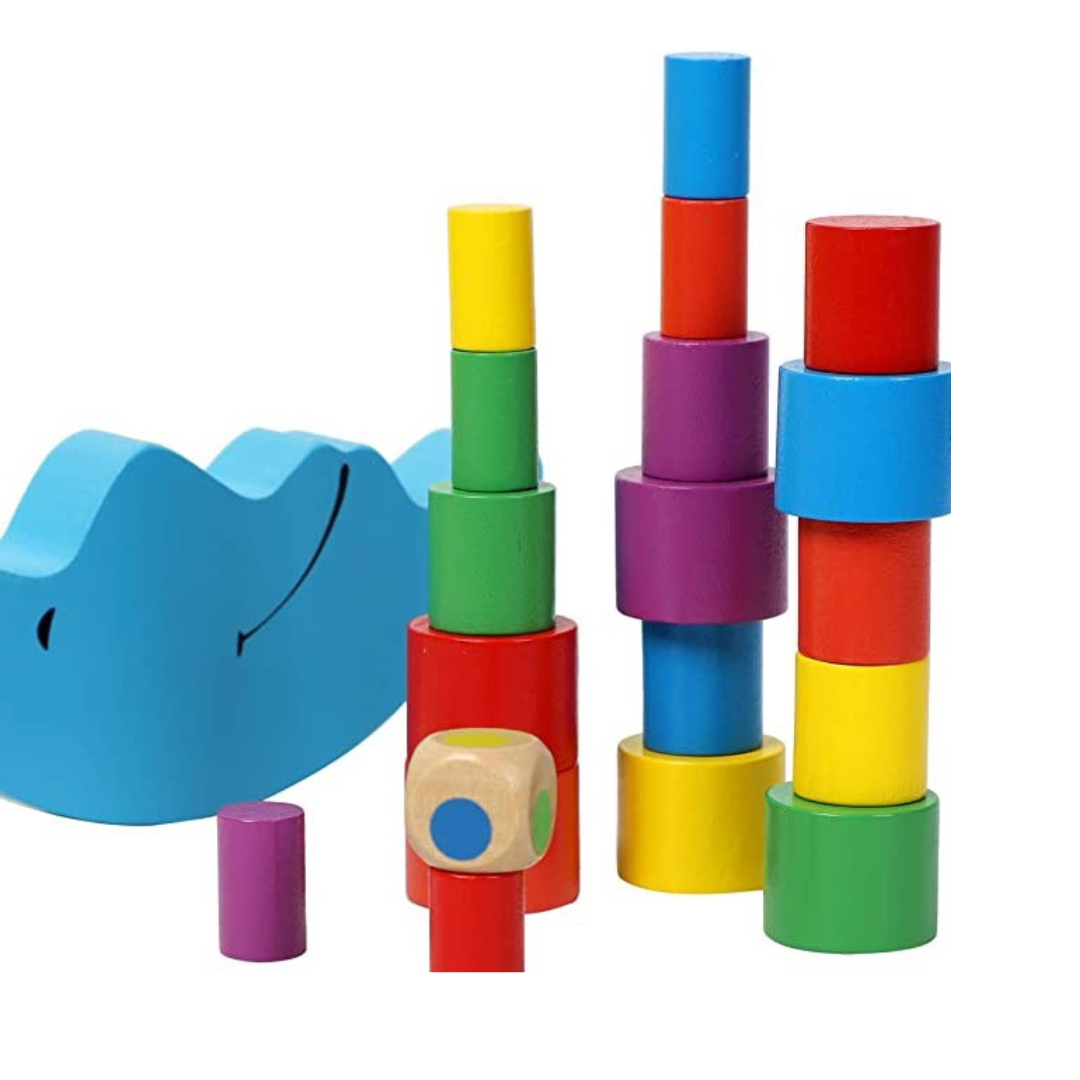Throw Dice inturn, based on the dice color, stack same color blocks. A fun educational Toy to tech children hand-eye coordination, hands-on ability,shape recognition,logical thinking ability, color recognition.
