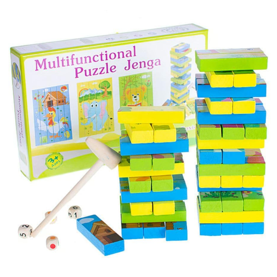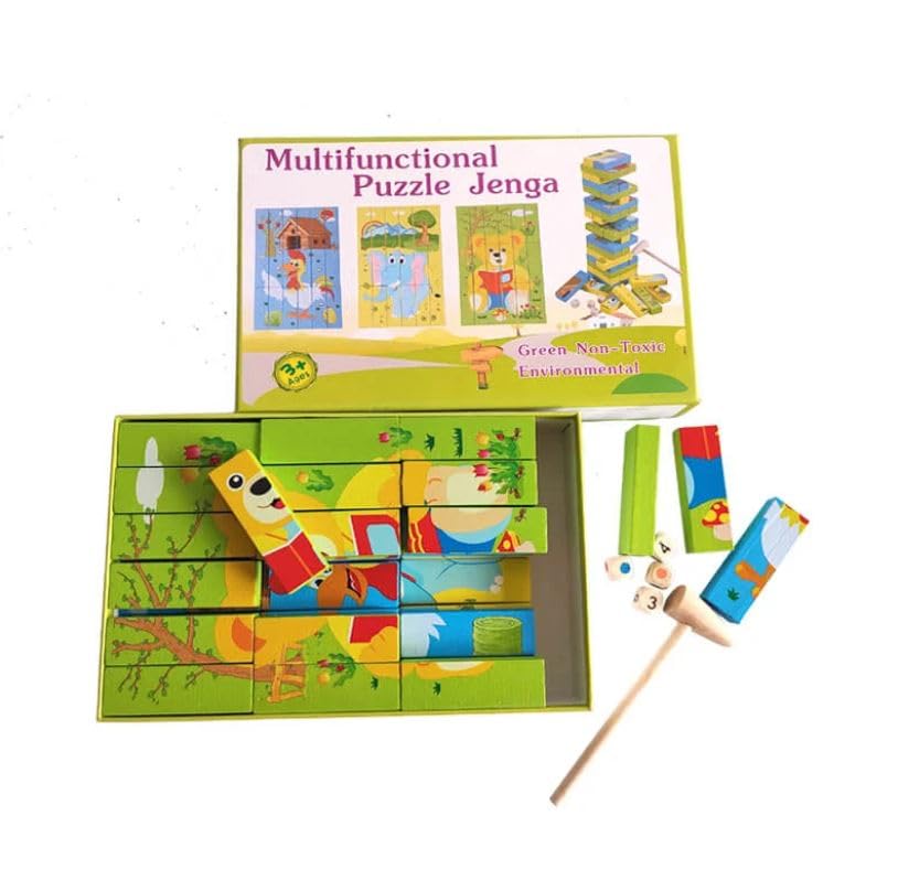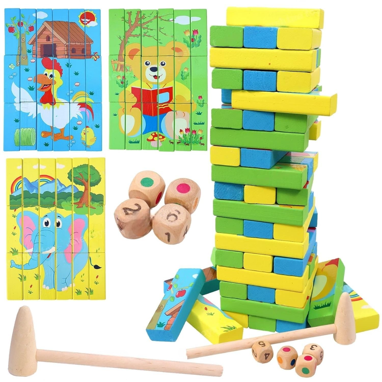 Our colorful building block games with bright, vibrant colors are loads of fun for young children. It’s simple and easy games, helps develop hand & eye coordination, Strengthens fine motor skills, visual-spatial skills; Inspires creativity, promoting color recognition and fine motor skills, so as to inspire children’s imagination. 2 in 1: The set can be used as a puzzle where kids can make 3 picture puzzles or it can just be played as a regular tumbling tower game with friends and familty