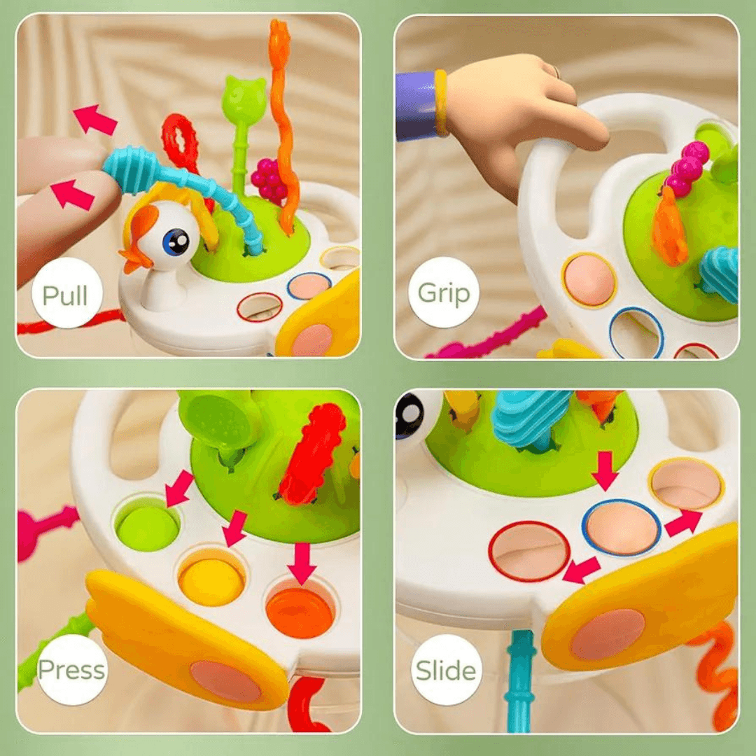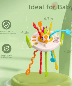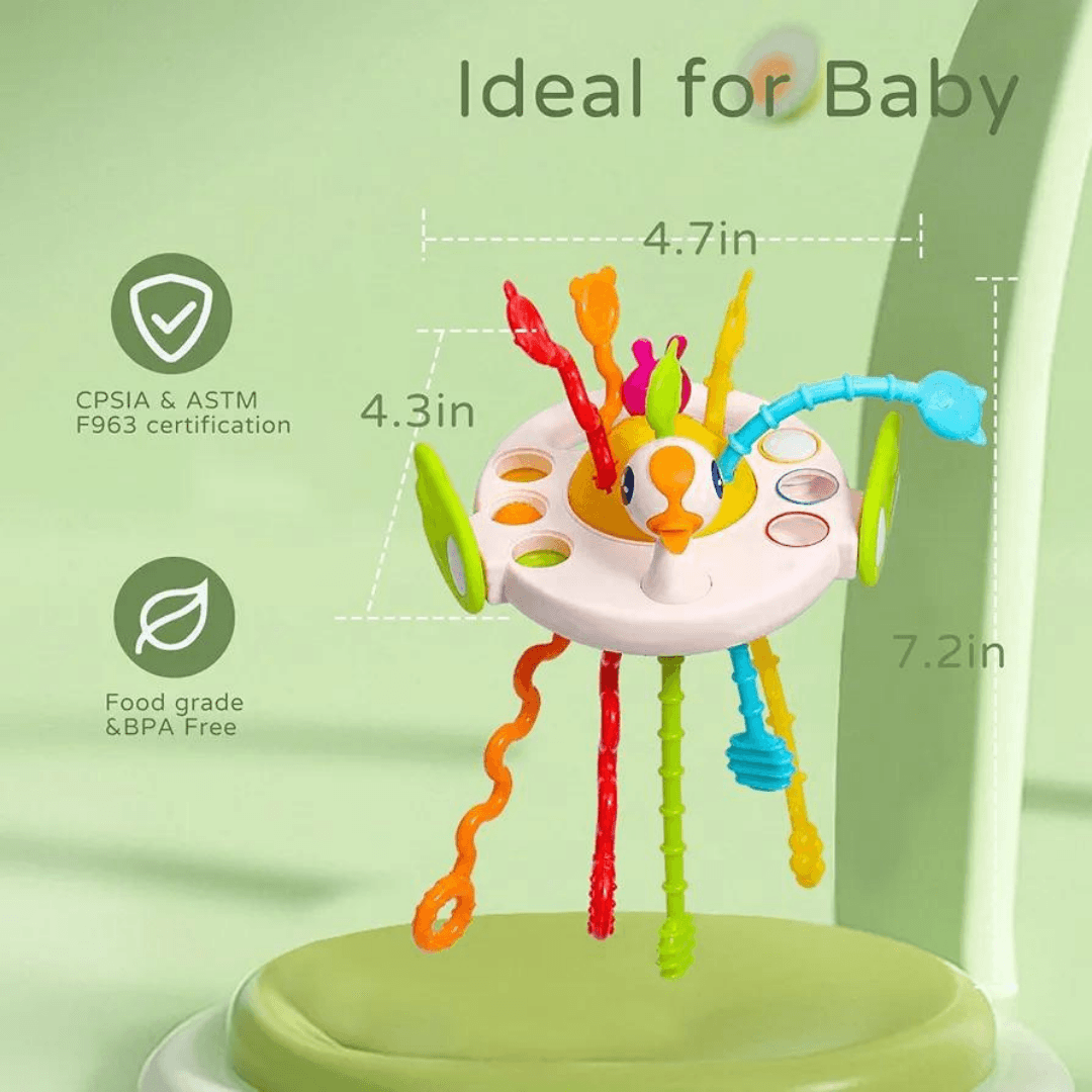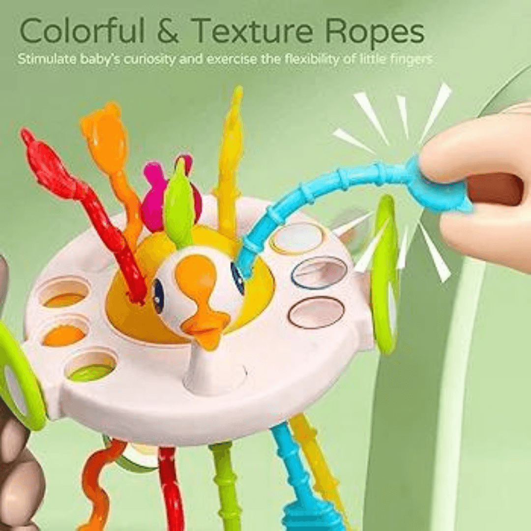 - ã€Montessori Toys for 6-18 Months】Super cute duck shape with vibrant pull strings and a built-in bell,this baby sensory toys was designed to improve baby’s sensory ability and motor skills.