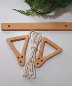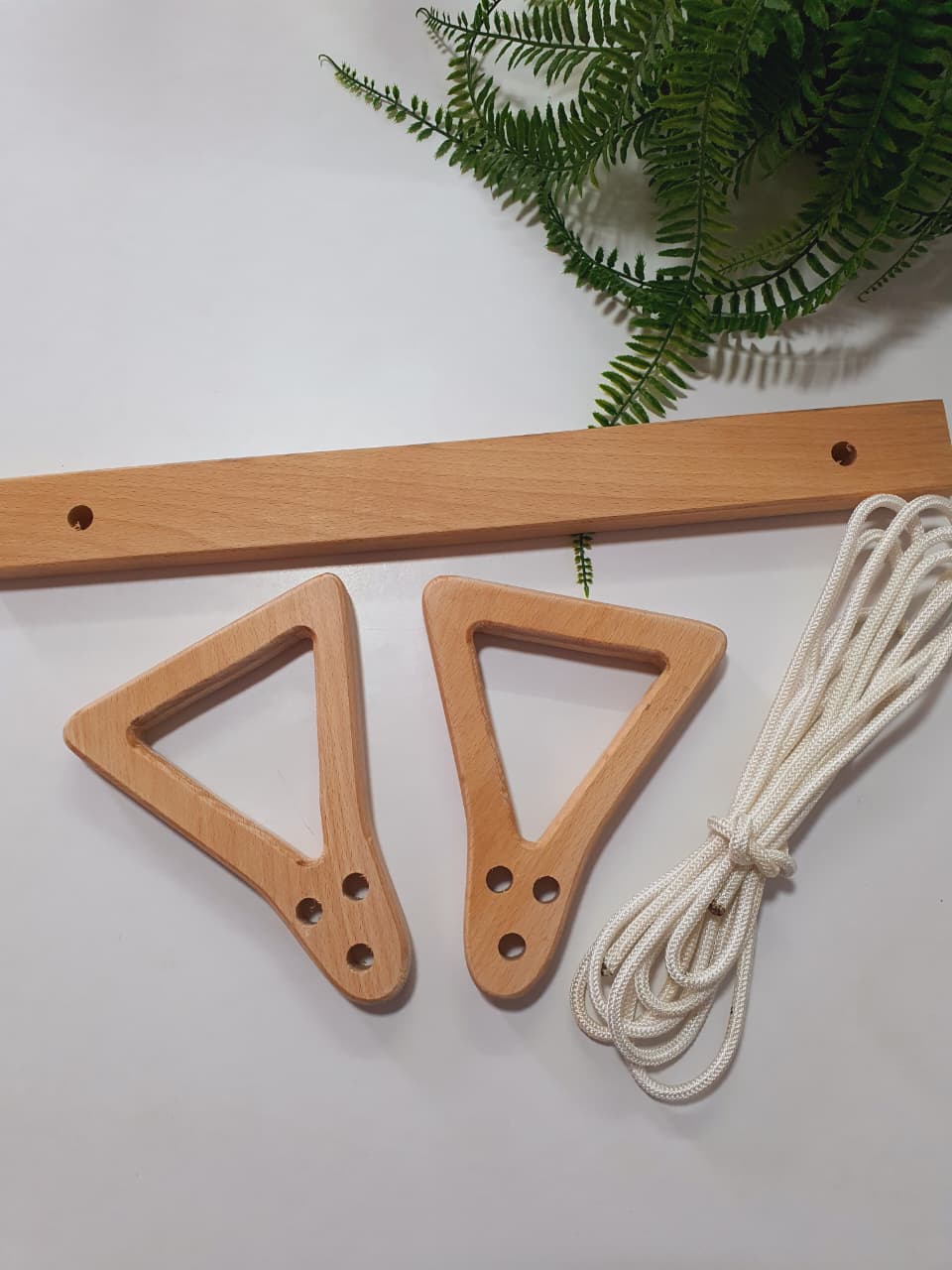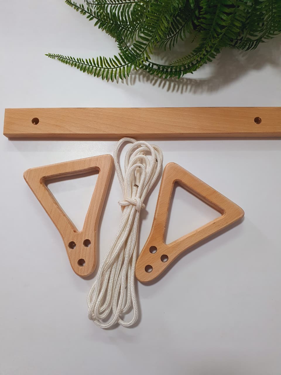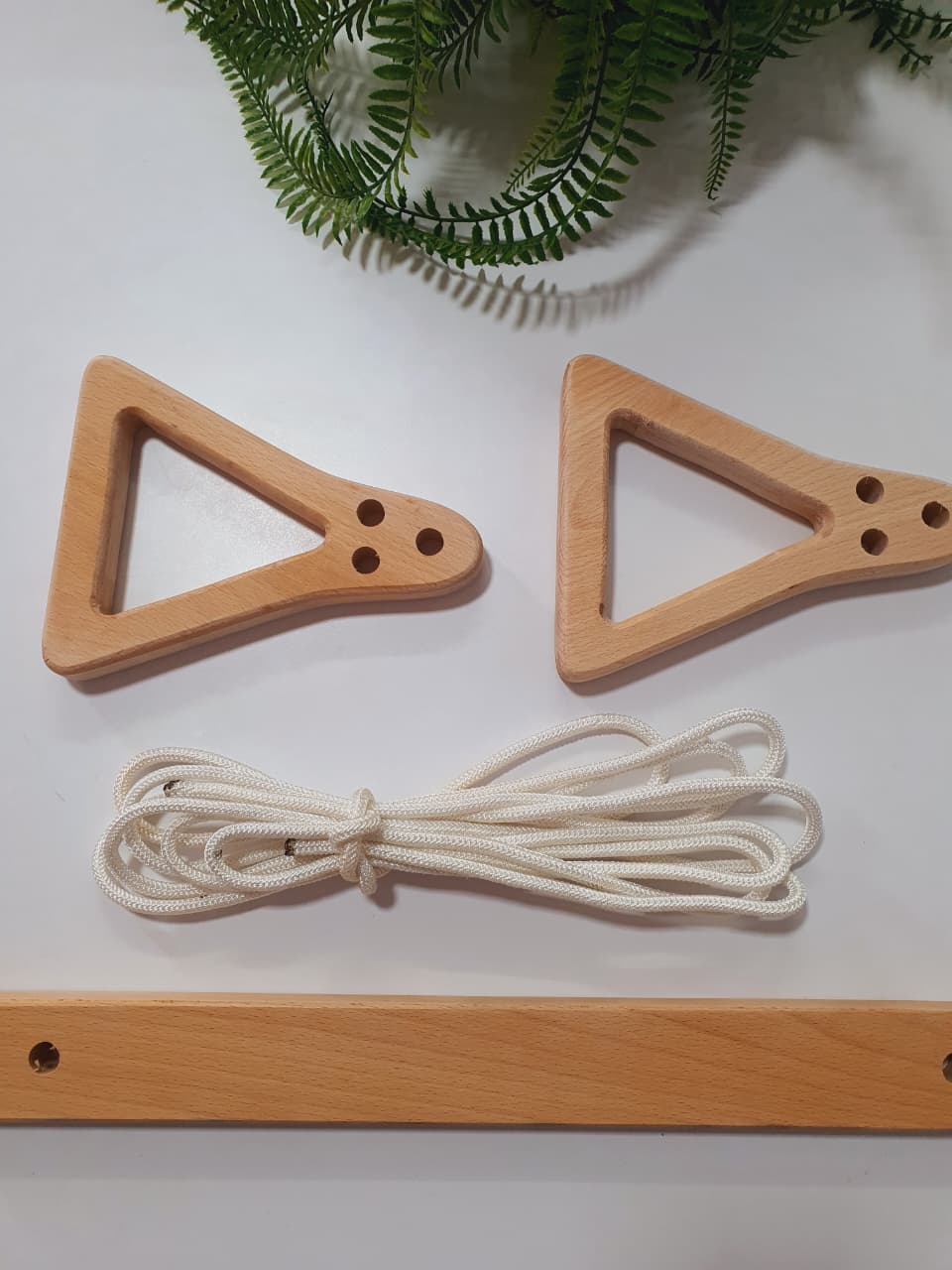 - Rod is 45cm. Rope is 15ft. Triangle handles are 19*15cm.